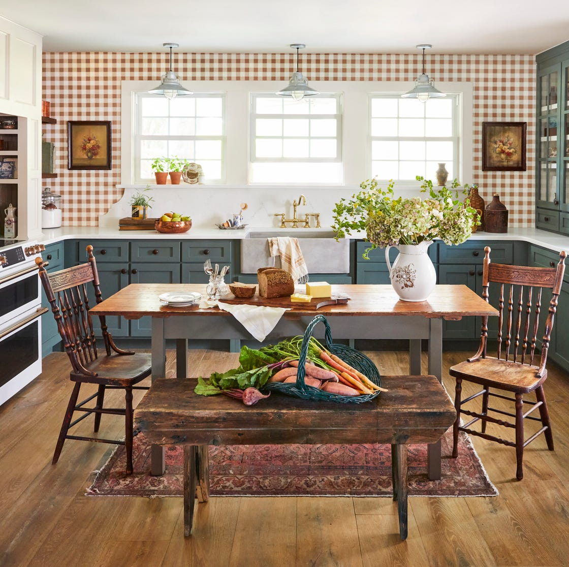 6. Antique Furniture Pieces: Incorporating antique or vintage furniture pieces is another way to achieve the rustic farmhouse kitchen vibe. Consider adding a wooden dining table with mismatched chairs, a weathered buffet, or even an old-fashioned pantry cabinet. These pieces contribute to the cozy, lived-in feel that makes farmhouse kitchens so appealing.